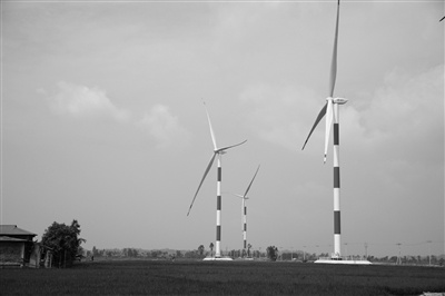随着最后一台风机安装完成,中国企业投资承建的孟加拉国首个集中式风电项目——科克斯巴扎尔风电场24日全面投产。这是近日拍摄的孟加拉国科克斯巴扎尔风电场的风机。(孙楠)