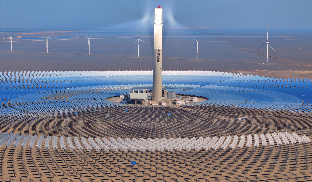 位于新疆哈密市伊吾县淖毛湖镇的国家光热示范项目——熔盐塔式50兆瓦光热发电站(2024年9月12日摄)胡虎虎摄
