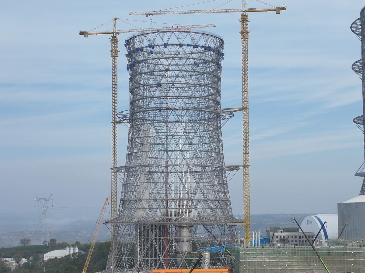 近日,由中国能建建筑集团、西北电建参建的华能正宁百万吨级碳捕集项目冷却塔结顶。
