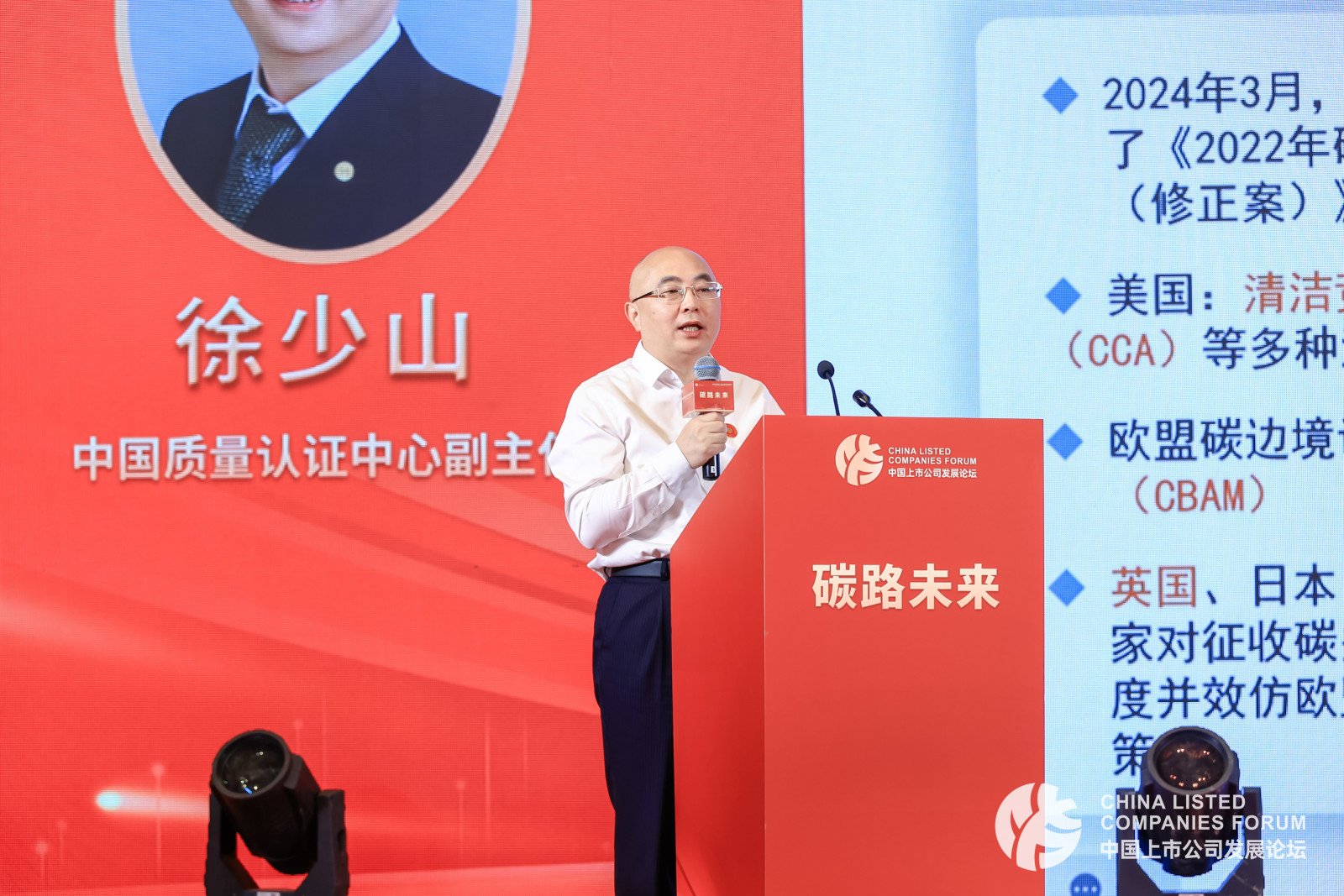 中国质量认证中心副主任徐少山作题为《国际国内碳足迹管理体系和绿色低碳供应链》的主题演讲