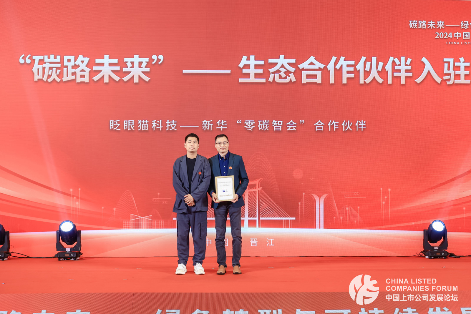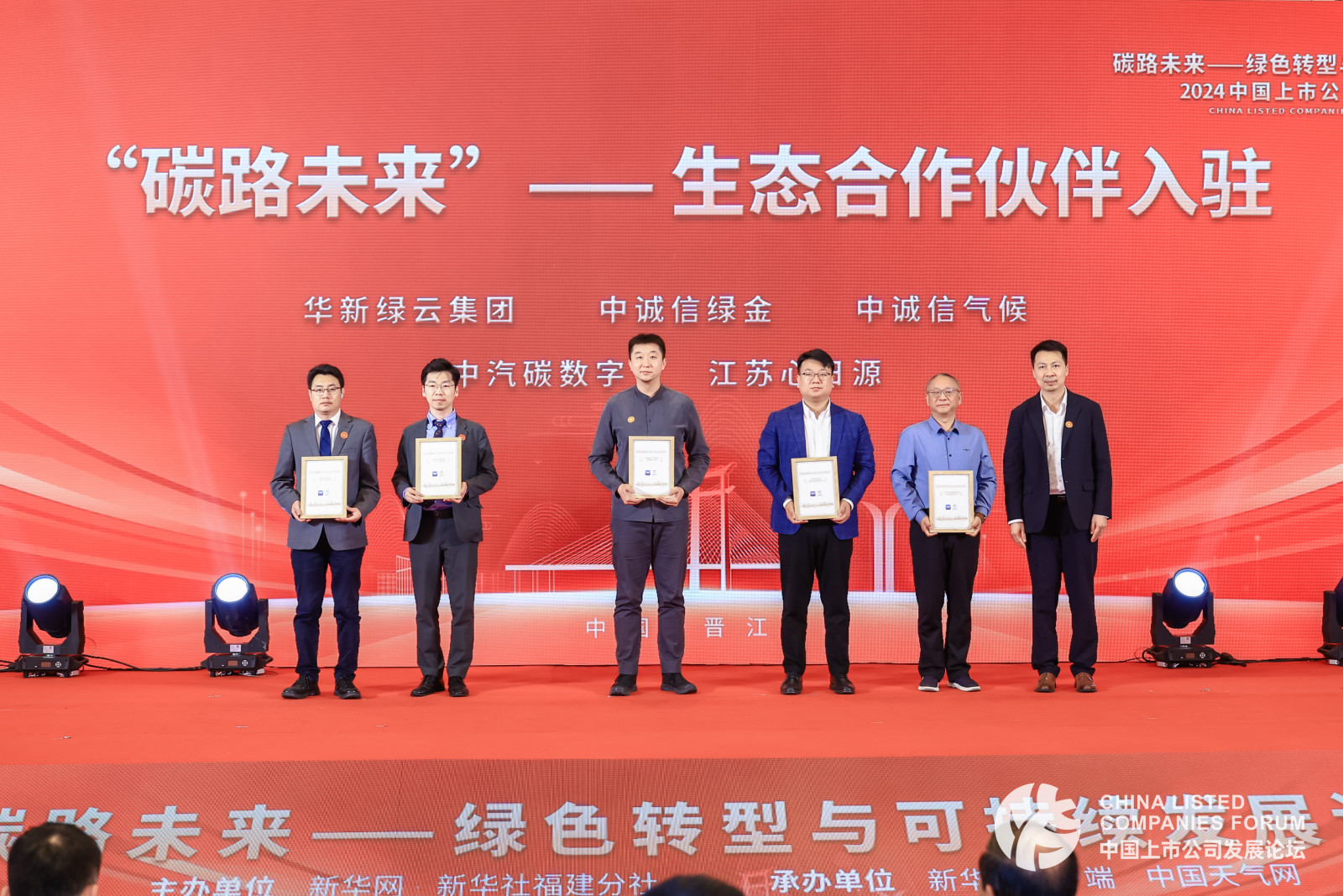 第二批入驻“碳路未来”平台的生态合作伙伴颁发了证书,包括华新绿云集团、中诚信绿金、中诚信气候、中汽碳数字、江苏心日源。