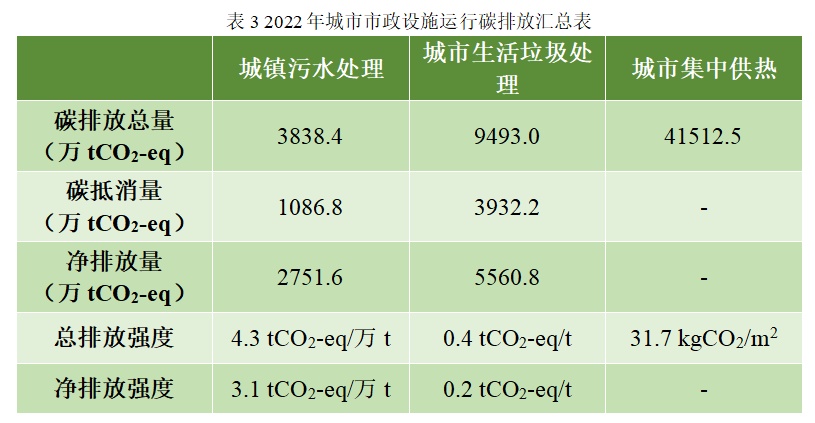 城镇污水处理、城市生活垃圾处理和城市集中供热等城市市政设施运行的碳排放数据更新至2022年。
