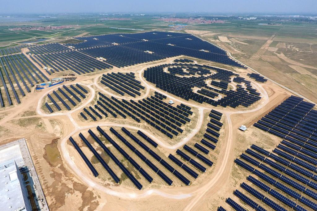 这是位于山西省大同市云州区的以熊猫为造型的光伏电站。詹彦摄