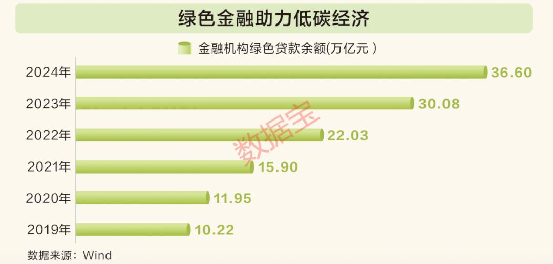 绿色金融作为推动我国绿色低碳经济发展的重要引擎,引领着经济向绿色转型。近年来,政府出台了一系列政策,强化金融对“双碳”目标的支持。央行推出碳减排支持工具,向金融机构提供低成本资金,为符合条件的碳减排项目提供优惠利率贷款,激励企业加大绿色投资;生态环境部等九部门联合发布《气候投融资试点工作方案》,探索气候投融资的有效模式和机制,引导社会资本投向绿色低碳领域。数据显示,金融机构绿色贷款余额由2019年末的10.22万亿元攀升至2024年末的36.6万亿元。