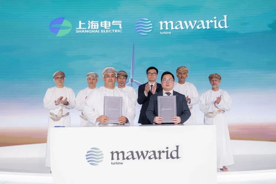 当地时间4月13日上午,在阿曼能矿部部长萨利姆·本·纳斯尔·阿乌菲、财政部长苏丹·本·萨利姆·阿勒贾布西、阿曼特别经济区与自由区主席阿里·本·马苏德·阿勒苏迪奈博士、商业与投资促进部部长卡伊斯·本·穆罕默德·阿勒优素福和上海电气集团党委书记、董事长吴磊等人的共同见证下,上海电气与阿曼Mawarid集团签署风电项目供货框架协议、技术授权、本地化工厂设计等一揽子合作协议。
