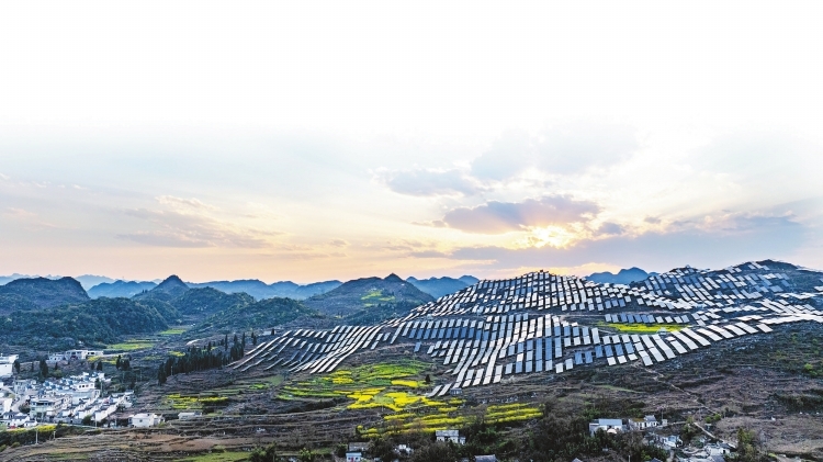 位于贵州省六枝特区的梭戛农业光伏项目,总装机容量100兆瓦,每年可生产1.32亿千瓦时绿色电能。王飞摄
