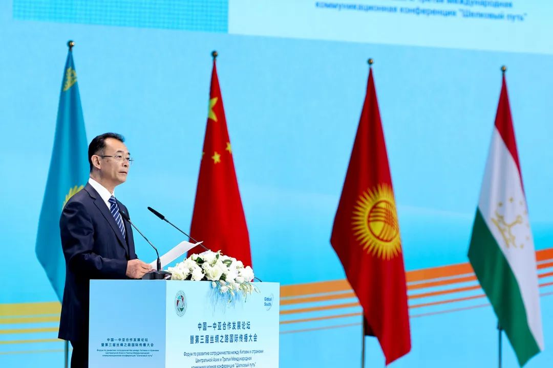 当日,中国—中亚合作发展论坛暨第三届丝绸之路国际传播大会在哈萨克斯坦阿斯塔纳举行,来自中国和中亚地区的约240位媒体智库和文化、企业界代表围绕深化丝路合作等议题进行深入讨论。
