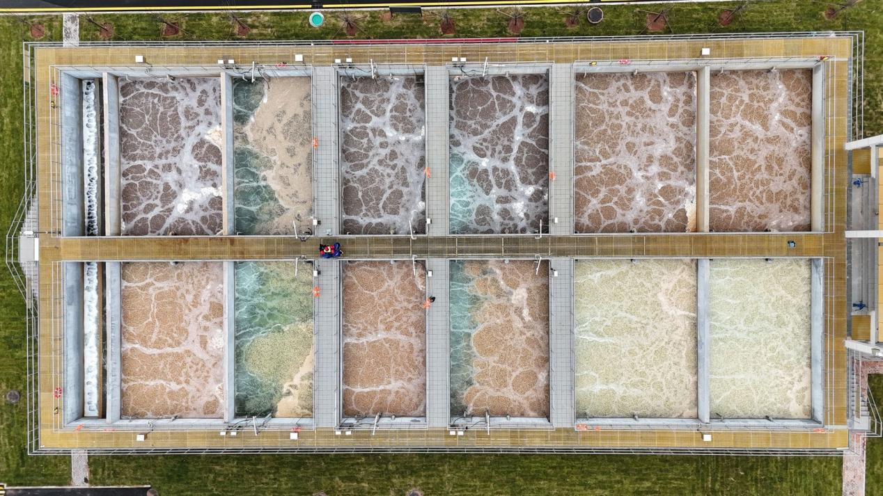 中铁上海工程局集团市政环保工程有限公司副总经理总工程师孙东晓说:“目前,我们在鄂尔多斯的高新水厂项目,进展也很顺利。这个项目是鄂尔多斯新能源产业升级重点配套保障工程,主要服务于高新区装备制造基地晶澳光伏项目、云计算等有高品质供水需求与工业废水排水需求的用户。项目的处理规模达7.2万立方米/天,其中工业废水处理规模3.7万立方米/天,净水处理规模3.6万立方米/天。预计今年9月30日投运,投运后可以让零碳产业园工业用水再生重复利用率达到94%以上,这个比例相当于全部重复利用,剩下的百分之几仅仅是工艺处理的损耗,使得整厂达到“近零排放”,基本实现场区水资源自平衡。”