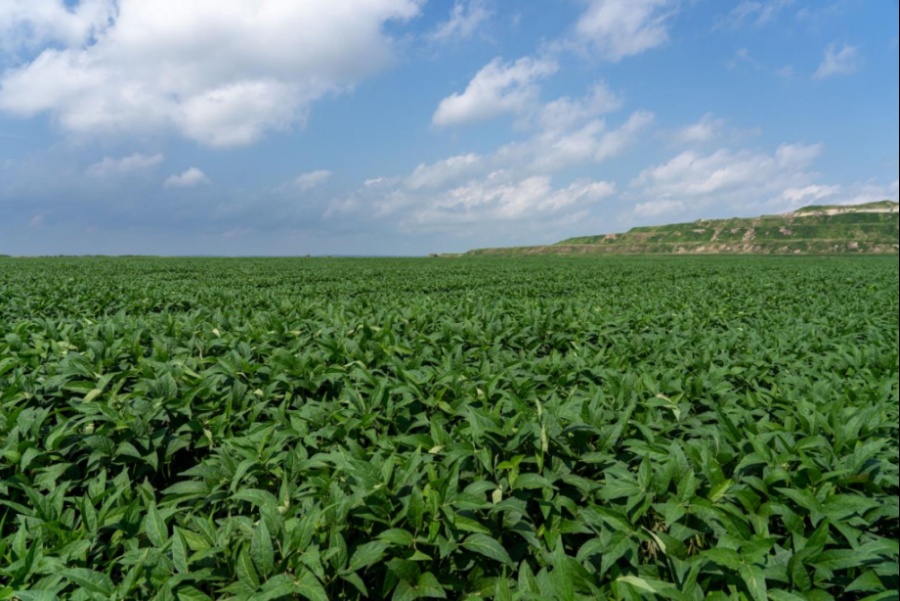 2024年9月7日,在宝清朝阳露天煤矿,近400亩大豆即将迎来丰收,一片片整齐的黑土田间,豆秧茁壮成长,饱满的豆荚挂满枝头,微风吹过,豆田里掀起阵阵绿浪、发出沙沙声响。