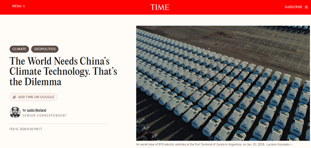 美国《时代》周刊关于中国绿色能源科技的报道,则流露出一种“既忧虑又钦佩”的微妙情绪。