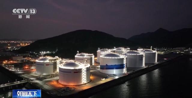 总台央视记者 张伟:这里是广东珠海高栏港,5座高度相当于20多层楼,直径近百米的,全球最大液化天然气储罐,经过37个月的建造,现在已全部建设完成,进入投产前最后的准备阶段。