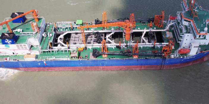 “新海鲟”轮可实现“一键疏浚”和能效智能优化,典型工况下可进行“无人疏浚”,由AI代替人工操作,有效提升疏浚安全和效能。