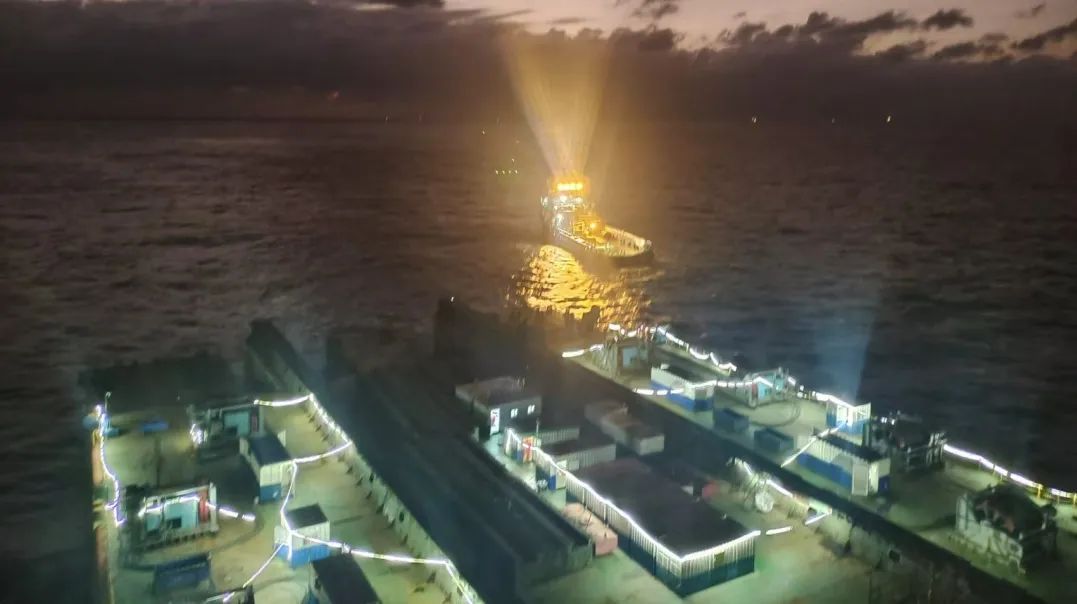 浮托安装依靠潮汐变化和船舶调载精准控制海上平台的升降,利用地月引力完成“海上举重”,在潮水的一涨一落间,完成平台与导管架的精准对接,具有“四两拨千斤”的特点。