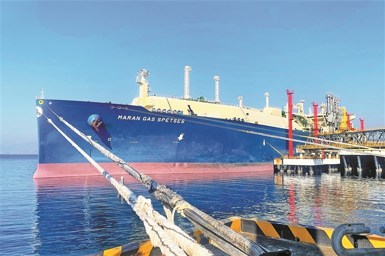 LNG运输船“MARANGASSPETSES”在深圳LNG码头卸货。(受访单位供图)