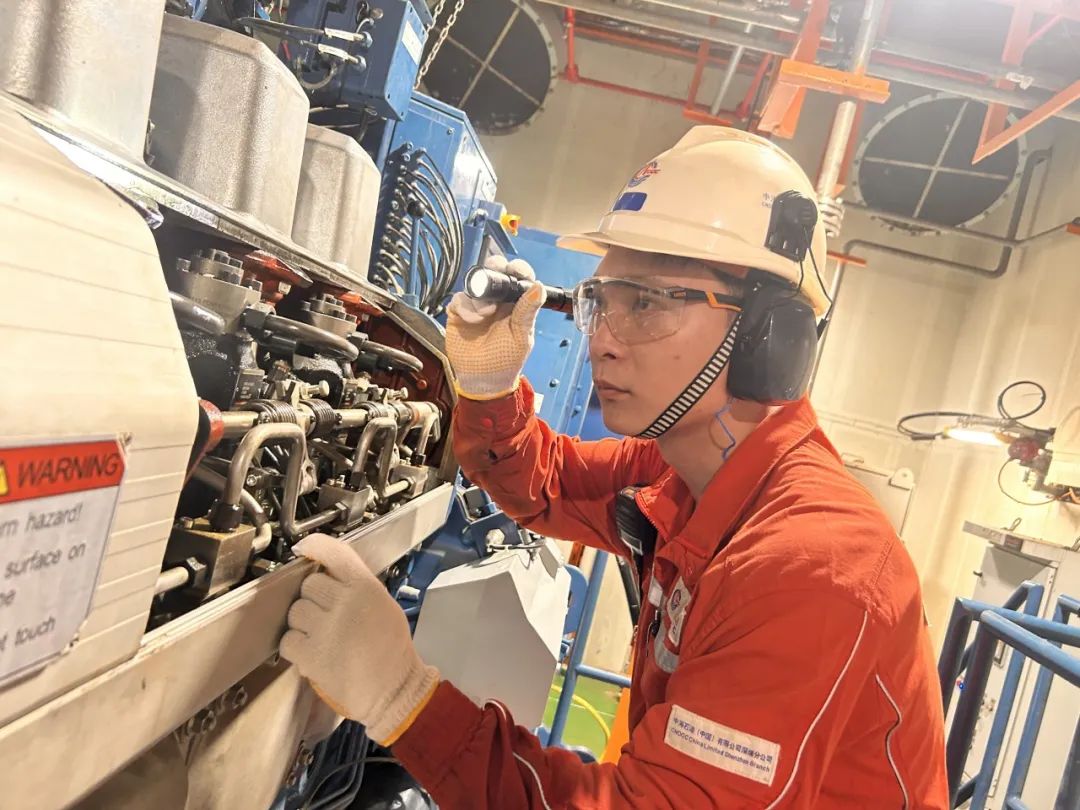 此次投用的两台双燃料发电机单机功率达1380千瓦,其核心功能在于以燃气模式为主体,将原油开采过程中产生的伴生气“吃干榨净”,将可燃气转化为绿色电能,为同类型海洋工程装备提供了可复制的节能减排方案。