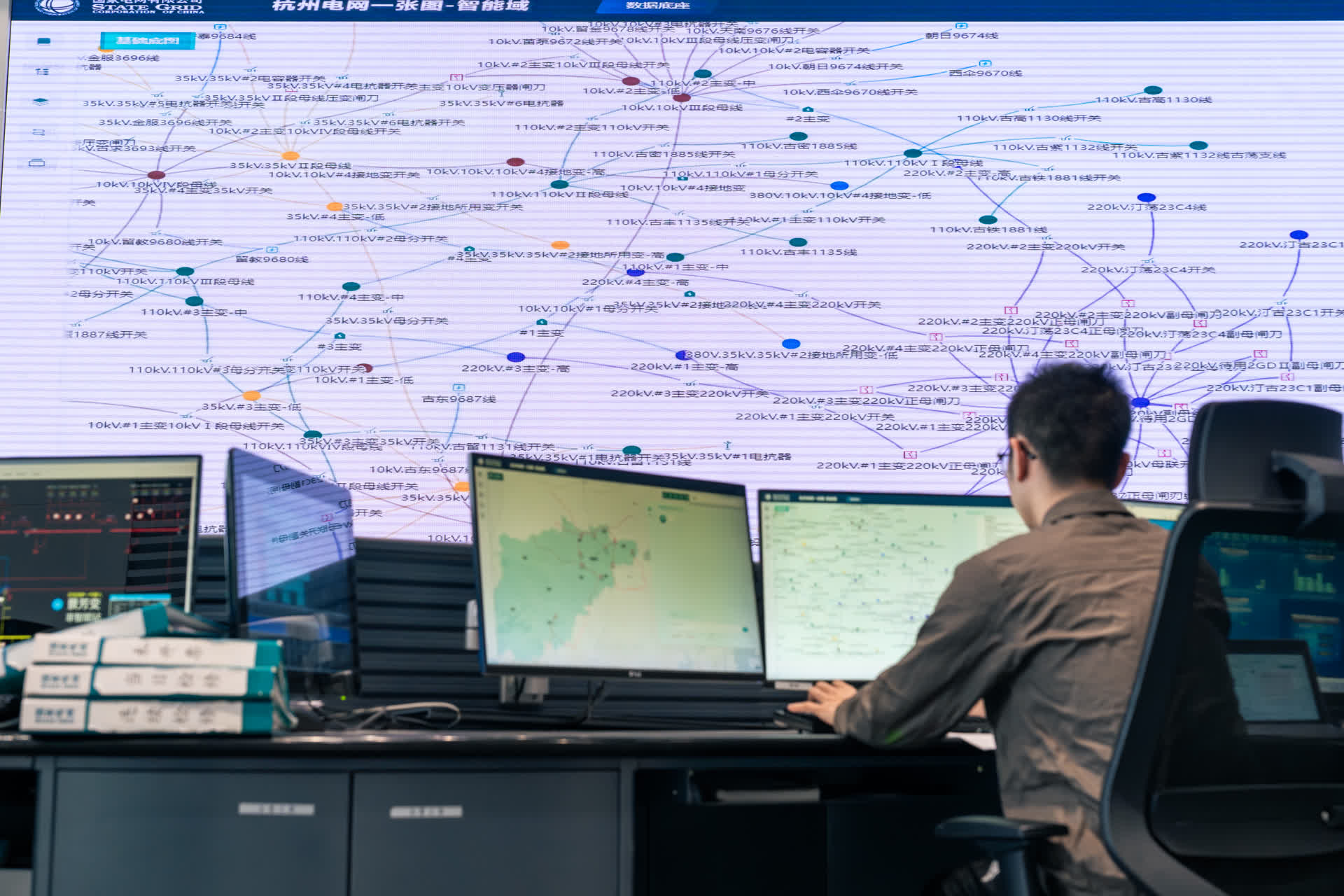 在杭州,全国首个“无人车+机器狗”一体巡检机器人通过自主city walk,进行远距离、跨区域巡检;具身智能走进变电站,实现在复杂检修场景下,应用人形机器人的远程技术指导;一个名为“光擎”智脑的大模型被训练成熟后上线,为杭州电网提供智能推理、主配网拓扑解析、重过载分析等应用……