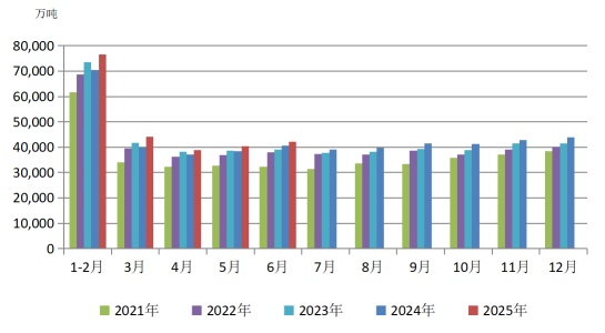 图3 2021—2025年煤炭月度进口量