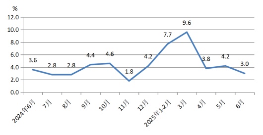 随着中美关税“休战”运力逐渐恢复,5月下旬以来中美主要港口的集装箱吞吐量同步回升,6月我国出口超预期增长,对东盟、非洲地区出口仍有韧性。在出口需求支撑下,6月工业企业出口交货值同比增长4%,较上月增加3.4个百分点。同时,“两新”政策仍为工业生产提供有效支撑,6月工业企业产销率同比下降0.3%,跌幅较上月收窄0.5个百分点,上述因素作用下,工业生产仍然保持较强的增长态势,6月工业增加值同比增速6.8%,较上月回升1.0个百分点。2025年上半年工业增加值累计增速为6.4%,较去年同期增加0.4个百分点。不过与内需挂钩的上游工业生产仍然偏弱。且在以旧换新政策优化、“618”需求前置、假期效应消退背景下,6月社零增速掉头回落。居民内生需求仍受收入的制约,居民消费能力有待进一步改善。6月楼市延续降温,地产投资增速创历史新低;且基建增速放缓。尽管当前经济保持稳定增长,但房地产市场低迷、内需疲软和产能过剩等结构性问题依然存在;中美贸易关系不确定性造成的压力仍在持续,即使保持目前关税水平,对外贸出口企业也是不小的压力,何况随着美国对东南亚国家转运商品加征关税政策的实施,我国多个出口行业或面临压力,出口抢运热度或进一步降温。