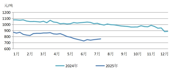 6月钢铁行业延续深度调整态势,钢铁PMI继续徘徊于收缩区间。6月钢铁行业PMI为45.9%,环比下降0.5个百分点,连续2个月环比下降。分项指数变化显示,钢铁需求偏弱运行,钢铁生产继续收紧,库存去化压力加大,钢材价格低位运行,原材料价格继续下行。截至2025年6月末,中国钢材价格指数(CSPI)为89.51点,环比下降1.29点,降幅为1.42%;比上年末下降7.96点,降幅为8.17%;同比下降13.45点,降幅为13.06%。1—6月份,CSPI平均值为93.75点,同比下降14.45点,降幅为13.35%。预计7月份,受高温多雨天气影响,需求端进一步承压运行,钢材价格继续低位震荡,供给端也难有上升动力。