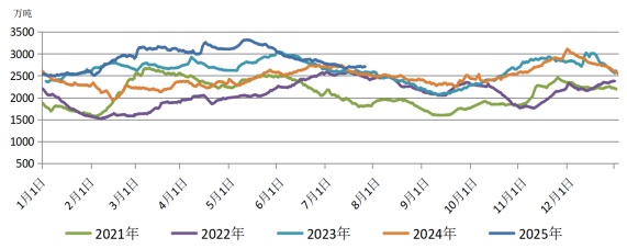图8 2021—2025年北方九港合计库存