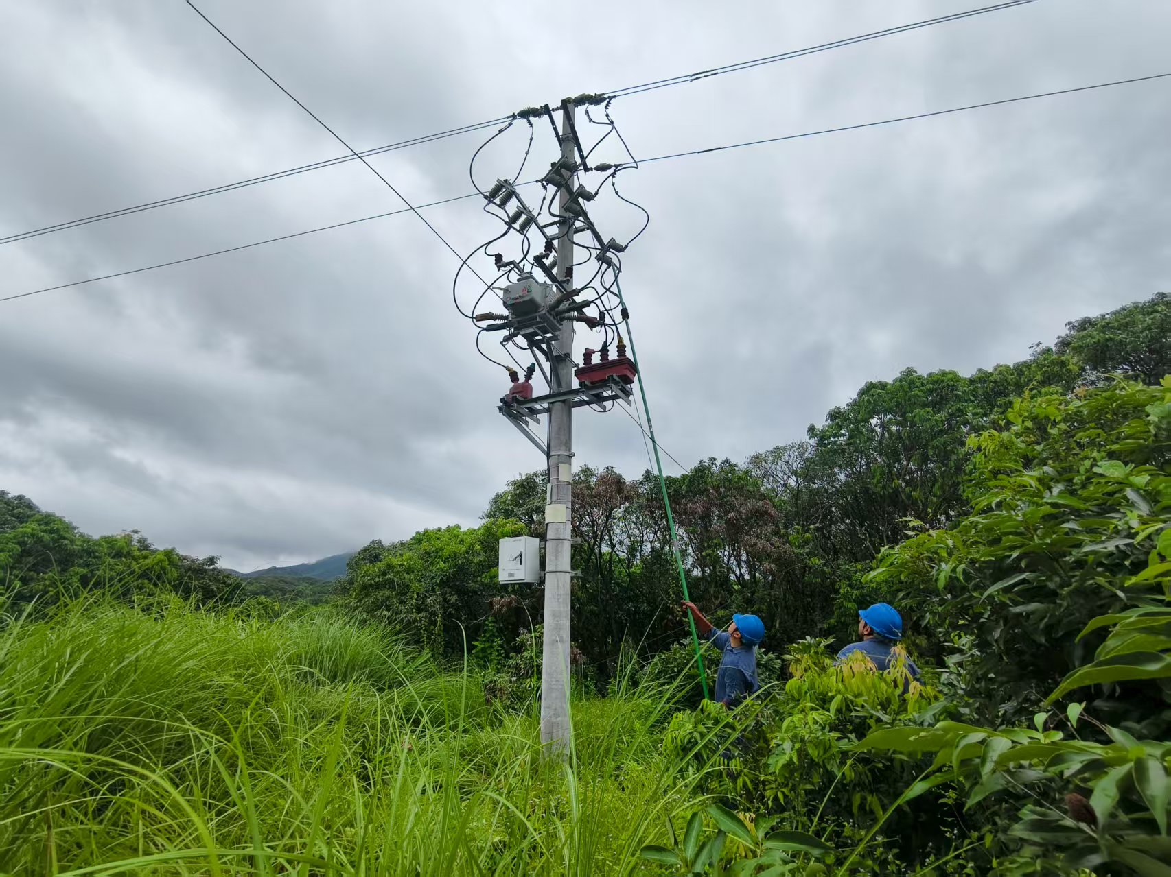 8月6日,南方电网广西钦州供电局工作人员排查故障后,及时对安全线路进行送电。何璞 李虹达 摄