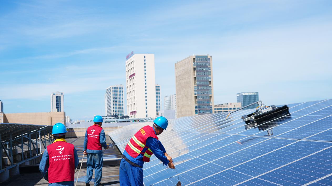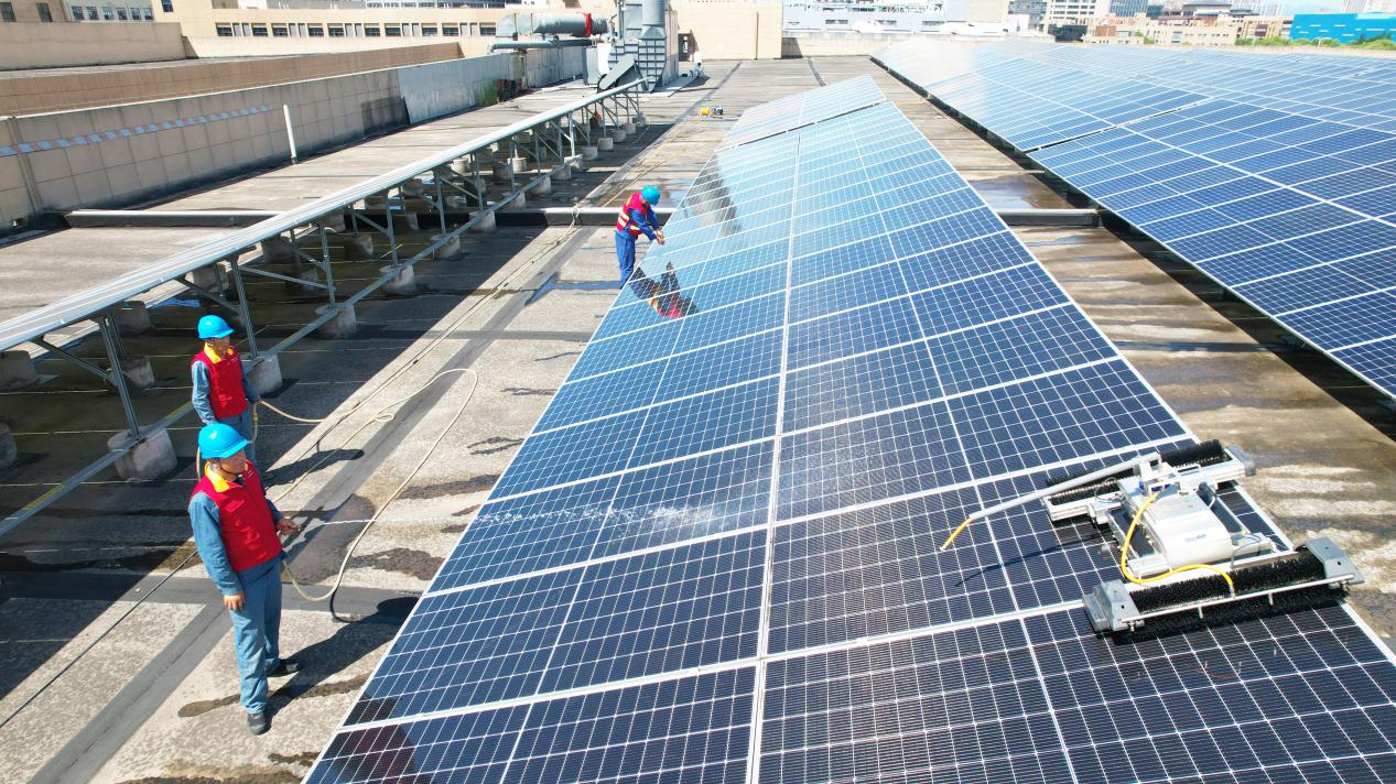 中国能源新闻网讯(唐波)“光伏面板需要定期进行清洗,避免组件面板上的灰尘、垃圾等附着物影响光伏发电效率。”8月7日,在浙江省杭州市临平区南公河路,浙江大有实业有限公司临平分公司工作人员对江潮电机科技股份有限公司企业分布式屋顶光伏设备,开展今年第三轮定期巡检,并应用光伏清洗机器人进行清洁工作,提高光伏组件的转化效率,为企业绿色发展“充电”。