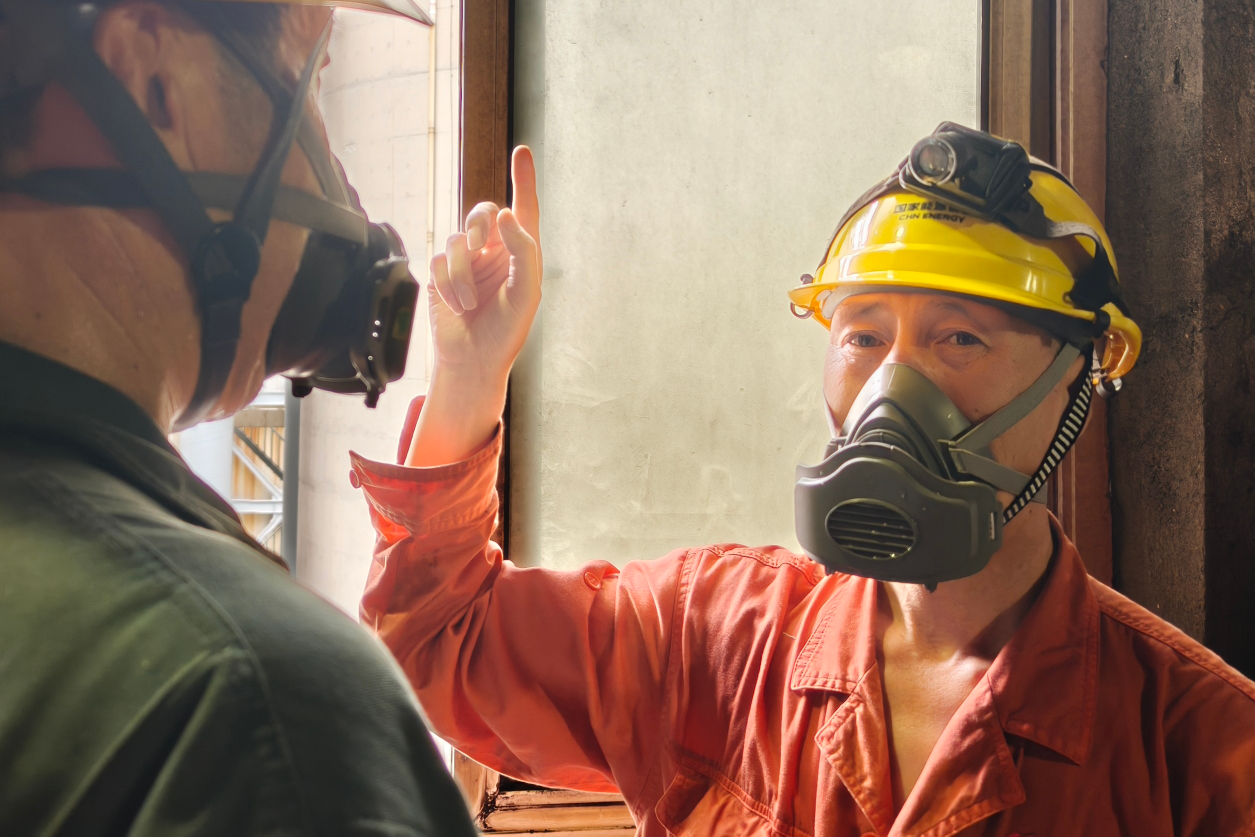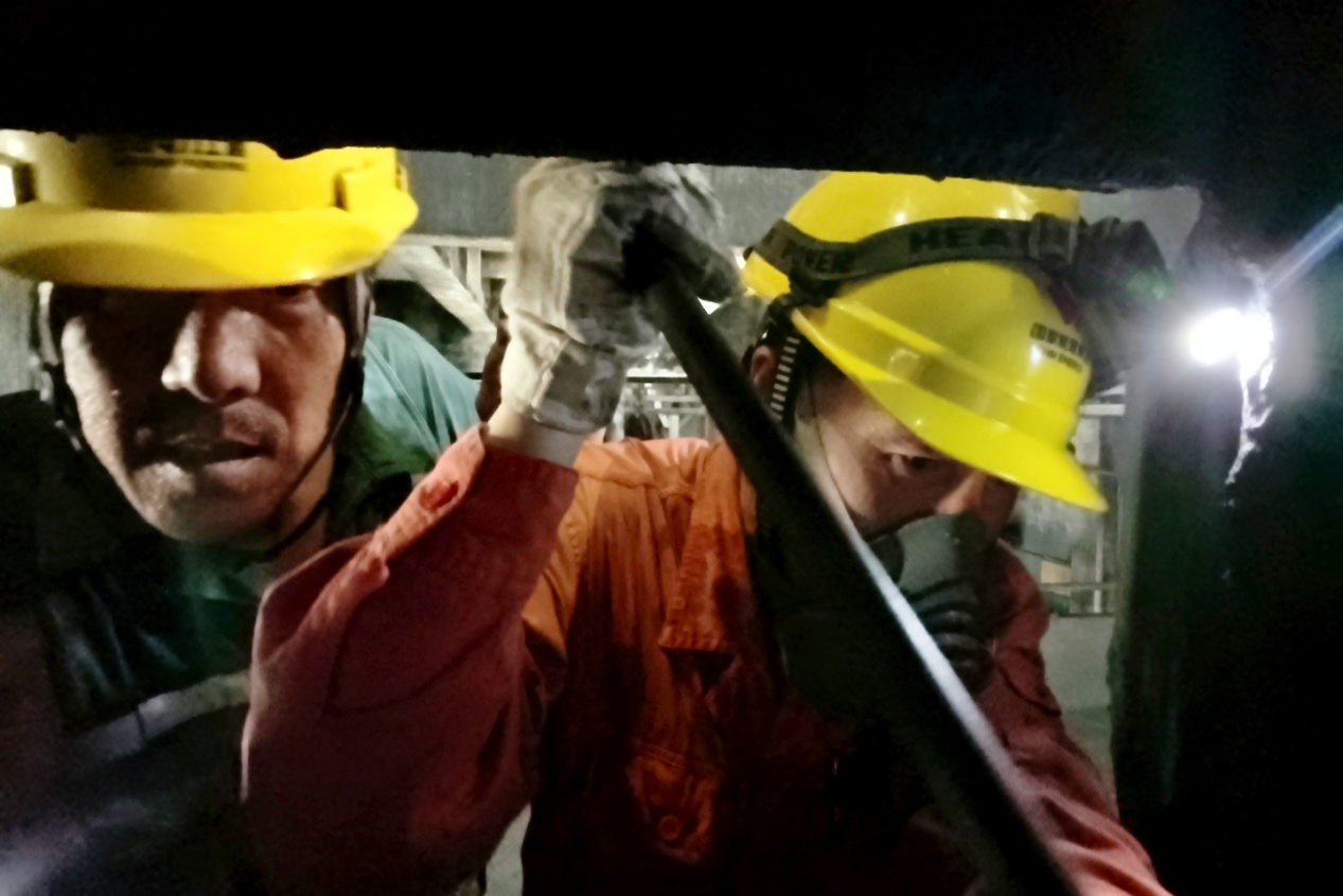 17时,各岗位刚接班,对讲机传来:“二期1号碎煤机粘煤严重,急需清理!”张红军带着方明伟冲进碎煤机室,刚停的雨让室内湿度近90%,煤块粘在衬板上像焊死了一样。“抓紧时间清理,锅炉等米下锅呢!”他打开头灯探进人孔门,热气混着煤蒸气扑面而来,钎子捅下去,水管冲上去,只留下个浅坑。张红军索性跪在设备旁,头和手从人孔门伸进落煤筒,一手握住胶管,另一只手用力捏着胶管头,让喷出去的水更集中、水压更大,并让高压水在落煤筒衬板与粘煤之间集中“力量”破开粘煤,汗水混着煤水顺着安全帽带往下滴,工服湿得能拧出水。突然“轰隆”一声,大块粘煤坠落在皮带上,他抹了把脸笑了:“通了!”这招还是以前雨季党员攻坚组琢磨的法子。