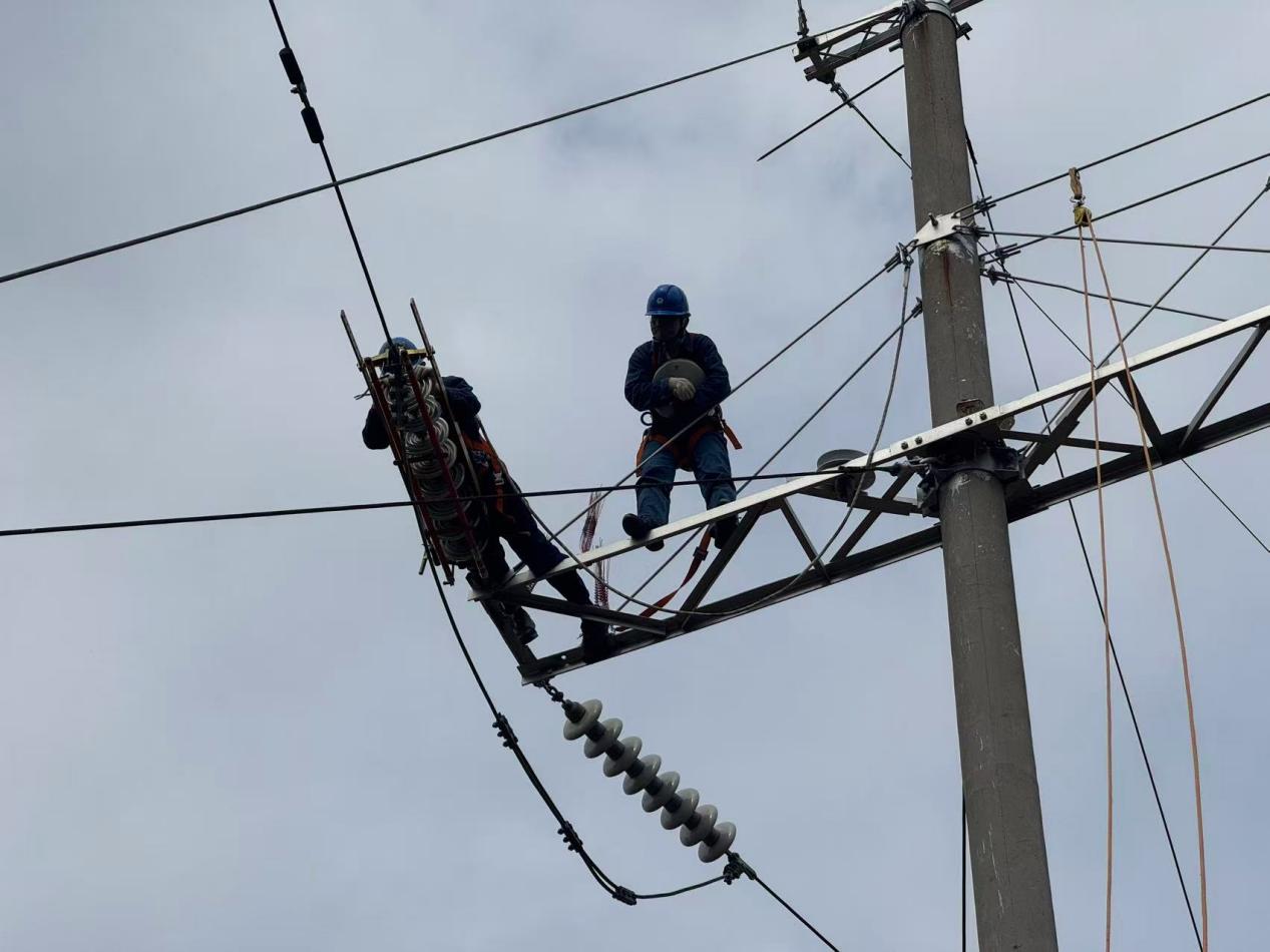 为彻底消除这些隐患,带电作业班技术能手们带着厚重的装备,在杆塔间灵活穿梭,严格遵循安全规程开展作业。从绝缘子的精准拆卸、旧件转运,到新绝缘子的安装调试,每一个环节都衔接有序、精准高效。寒气浸透了工衣和手套,却丝毫没有影响作业节奏。凭借着丰富的实战经验和专业技能,作业团队成功完成了阜西线100余片绝缘子的更换,让这条关键线路重焕“健康活力”。