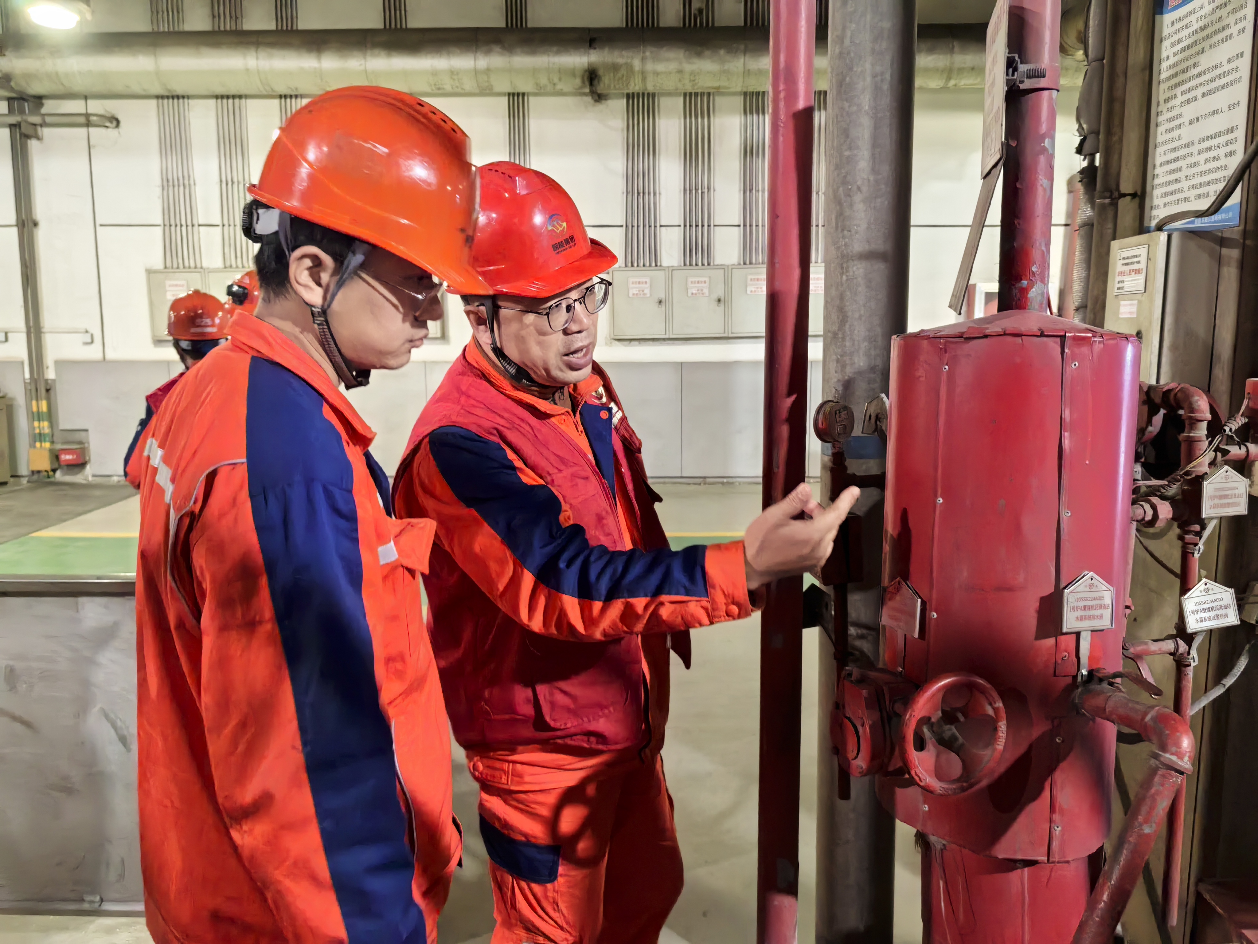 测试中,党员突击队充分发挥“尖刀”作用。在白天完成C修任务后,队员们合理调配时间、迅速集结。集控室内,党员技术骨干紧盯火灾报警主机信号,精准执行手自动切换与系统复位;阀组现场,他们与运行人员协同操作阀门,全程监护2号在运设备安全,对喷淋覆盖均匀度、系统响应时间等关键参数逐项核查。当声光报警准确触发、雨淋阀组快速启闭、水雾精准覆盖目标区域时,党员们紧绷的脸上终于露出笑容——所有指标均符合设计要求,系统可靠性得到充分验证。