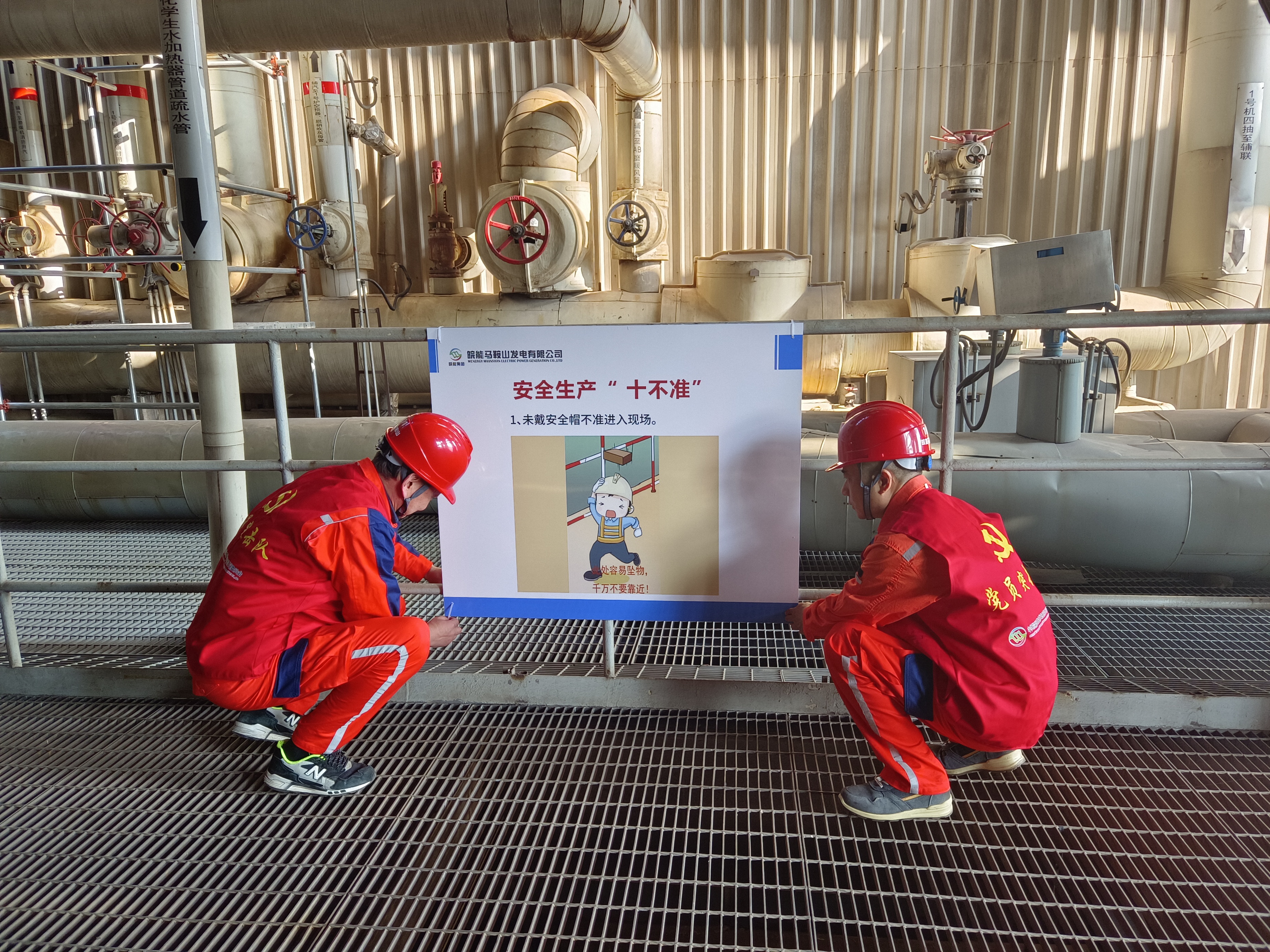 中国能源新闻网讯(刘燕 刘晶)“安全生产‘十不准’,不准……”,11月20日,皖能马鞍山公司检修现场,一张张充满严肃规章和趣味漫画的宣传展板落户隔离栏,技术支持部党支部联合安监能源党支部组建党员突击队,以“送安全到现场”专项行动掀起检修一线“安全热浪”,为高标准、高质量完成检修任务注入“红色动能”。
