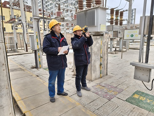 巡检现场,运维人员携带红外测温仪、绝缘监测仪、无人机等专业设备,立体巡检模式给每一台设备都进行全维度“体检”。针对冬季易因低温、重载发热的导线接头、开关刀闸、变压器套管等关键部位,运维人员手持红外测温仪逐点扫描,屏幕上跳动的温度曲线,能够精准捕捉异常发热点,确保第一时间锁定隐患、快速处置。此外,冬季用电高峰期多集中在夜间,此时段设备的潜伏性缺陷更易暴露,为此变电运检班特意增加夜巡频次,用红外测温仪精准捕捉白天不易发现的温度异常,推动变电设备故障隐患在萌芽阶段即完成闭环治理。