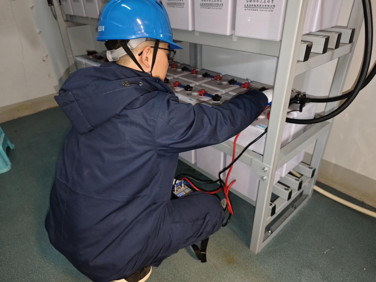 1月21日,国网湖北直流公司检修人员向萌冉在±500千伏江陵换流变电站开展低压直流系统蓄电池检测。邓康敏 摄