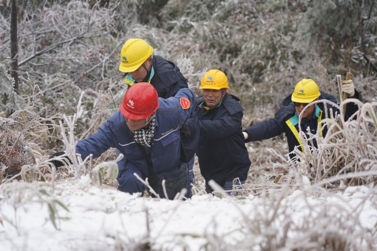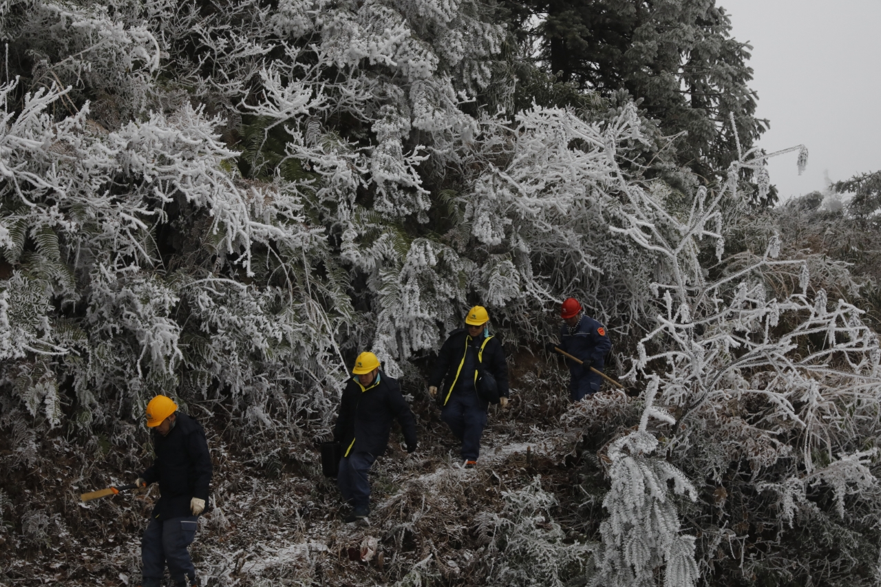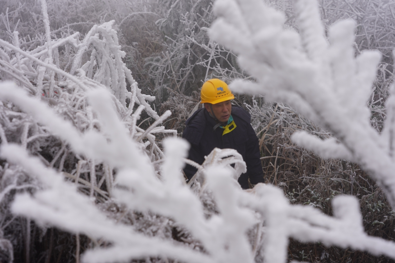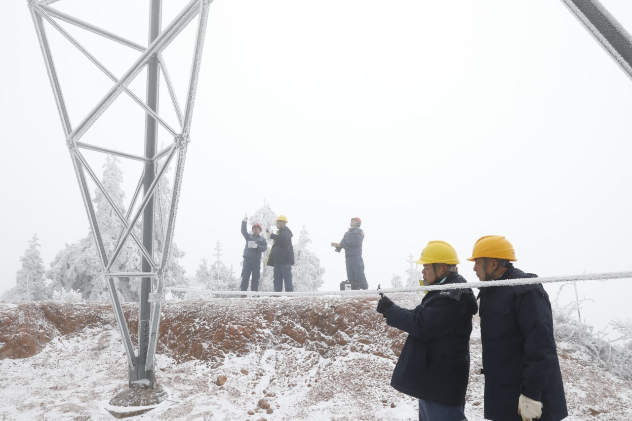 中国能源新闻网讯(莫希涛 吴涛 谢忠敏 付连柔)受寒潮影响,1月21日,广西桂林高寒山区部分供电线路出现覆冰,为了保障线路安全稳定运行,南方电网广西桂林供电局组织专业技术人员开展特巡,实时监测线路覆冰情况并及时开展融冰除冰工作。截至21日14时20分,桂林供电局已通过直流融冰方式对7条覆冰线路开展融冰。图为工作人员在110千伏中两线监测覆冰情况,为开展线路直流融冰提供精准现场数据。