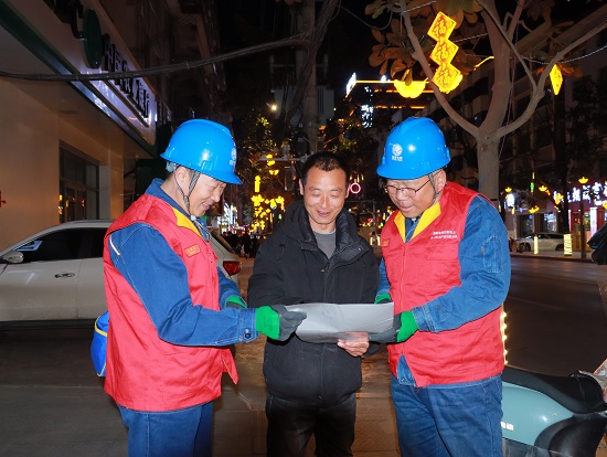 检查过程中,队员们坚持“边排查、边整改、边宣传”,对发现的线路老化、固定不牢等小型隐患现场立即处理;对一时难以整改的问题,详细登记建档,明确整改时限与责任人,闭环跟踪落实到位。同时,工作人员向周边商户、过往市民讲解节日安全用电常识,提醒市民不要随意触碰亮化线路、不在电力设施附近燃放烟花爆竹,引导大家共同维护安全用电环境,筑牢全民安全防线。