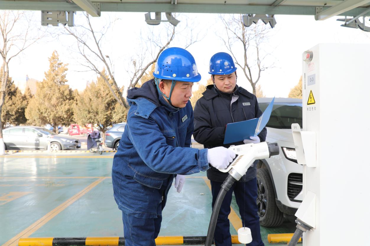 国网甘肃酒泉供电公司组织工作人员对辖区内公共区域充电桩开展专项安全检查。彭聪 摄