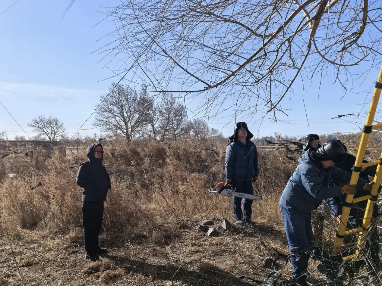 针对树障隐患,班组全面梳理线路通道内树木台账,校核导线与树木安全距离,科学制定修剪计划并有序实施。在凉城地区,输电管理处联合六苏木派出所开展警企联动,协同处置110kV海牵线、海樊线等线路通道树线矛盾,形成“信息共享、协同治理”的联防联控机制。