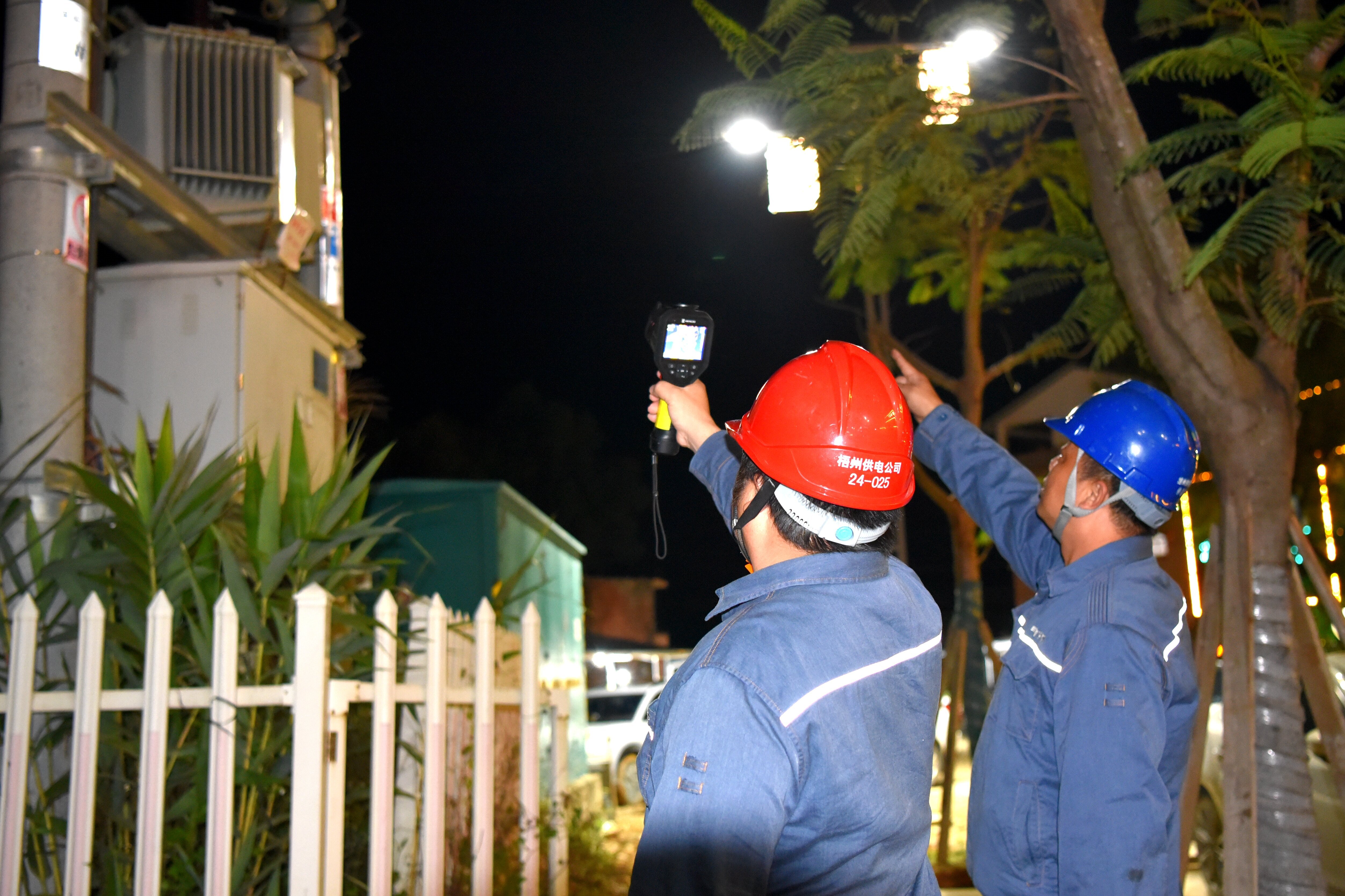 在万家团圆之际,在大家最幸福的时刻,在苍梧县大街小巷、乡村原野,一群群头戴安全帽,身穿蓝工装,肩挂工具包的供电员工在一片祥和中格外显眼。他们正在巡线途中、低压运维、保电现场不停地忙碌着。该公司成立12支党员服务队、共180人的春节保供专项应急队伍,严格执行领导带班制度、“零报告”制度,确保用户需求迅速响应、电网异常高效处置。该公司3辆发电车、40台发电机、7辆绝缘斗臂车、40辆普通抢修车辆全部维保到位,燃油加注完毕,抢修物资充足,满足快速抢险需求,以“满格电”守护千家万户的除夕“长明灯”。
