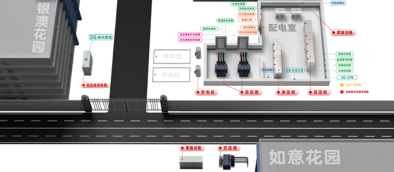 在状态感知方面,为银澳花园配电室搭建4类52个信息终端的“神经触点”,融合5G通信技术,构建覆盖配电站房环境、安防、设备监控等各类信息要素的数据感知网络,实现了站房运行状态评价的全面化、实时化、在线化,解放了人力,做到了差异化运维。在数智赋能方面,银澳花园数智化示范台区利用边缘计算控制策略,实现了终端就地化控制,能够根据环境变化操控风机、除湿机、灭火器等站房智能设备,实现站房运行环境自动调节、安防状态自动侦测、设备异常自动告警,确保设备运行环境的常态稳定和动态优化。在辅助决策方面,对设备过热、局放超标等异常状态实现了主动预警,对设备运行状态进行评价分析,指导开展主动检修和项目储备,提高投入产出比和管理效率效益。