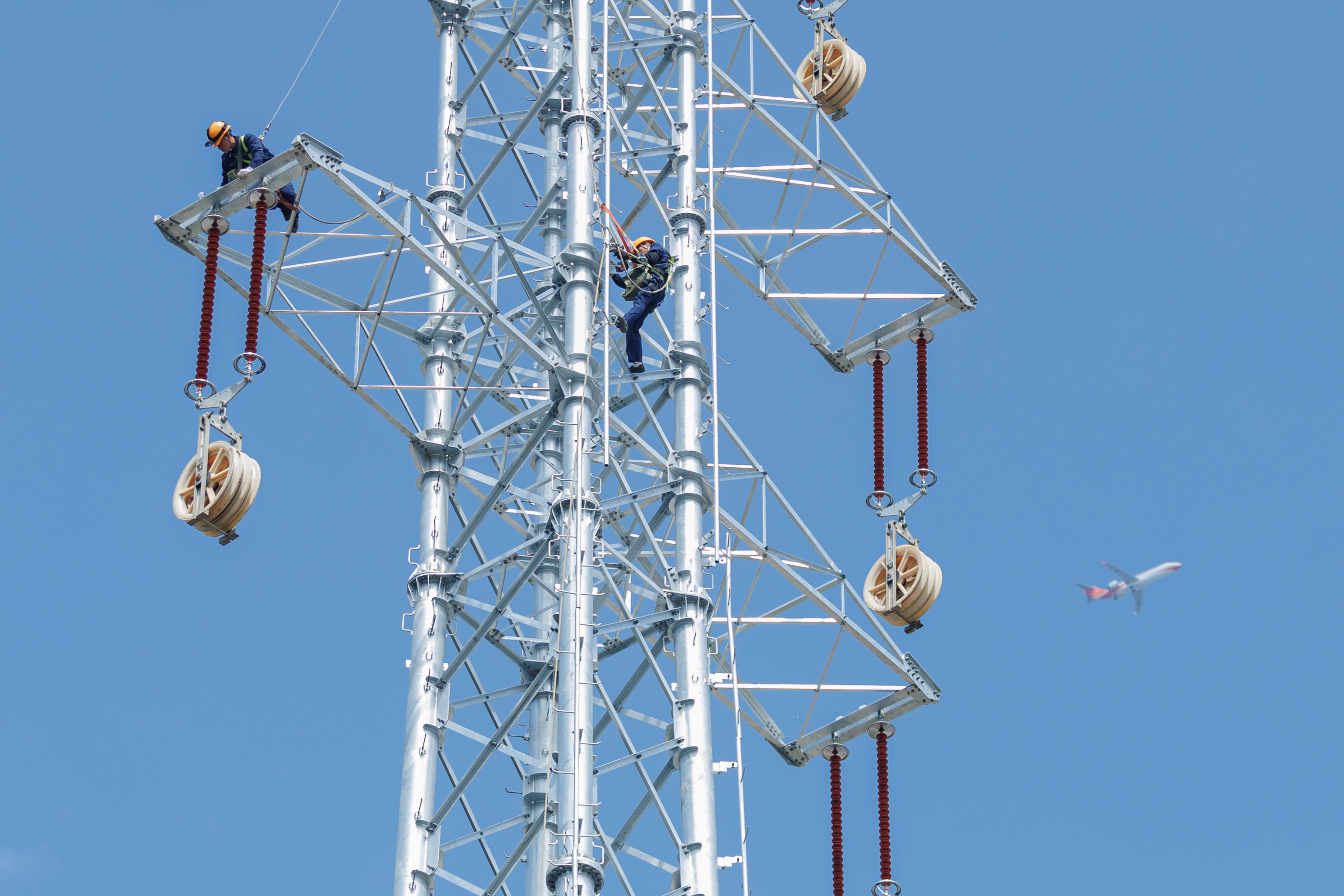 “为了加快工程进度,我们施工人员凌晨四点不到就起床,五点前完成集合以及任务分配,五点整正式开始施工作业。”项目经理何祝君介绍道。面对施工任务零散,作业面点且繁杂等问题,供电公司本着“好中选优、优中选精”原则挑选施工力量,在工程进场前组织安全考试,确保施工队伍和人员安全意识强、安全技能高,促使“四个管住”要求有效落地。该施工路段毗邻交通要道,针对这两处作业点的特殊情况,施工方在现场全方位布设“布控球”,全程对施工作业点进行电子摄像远程监控,让施工作业现场管控更精细有效。目前,整个补强工程共计96名一线班组人员,分布在51号塔、54号塔、55号塔、58号塔4个作业地点同时作业,当前工程处于立塔架线阶段。该工程完成后,将增强龙湾220千伏网架结构,提高区域配电网的供电能力和供电可靠性。