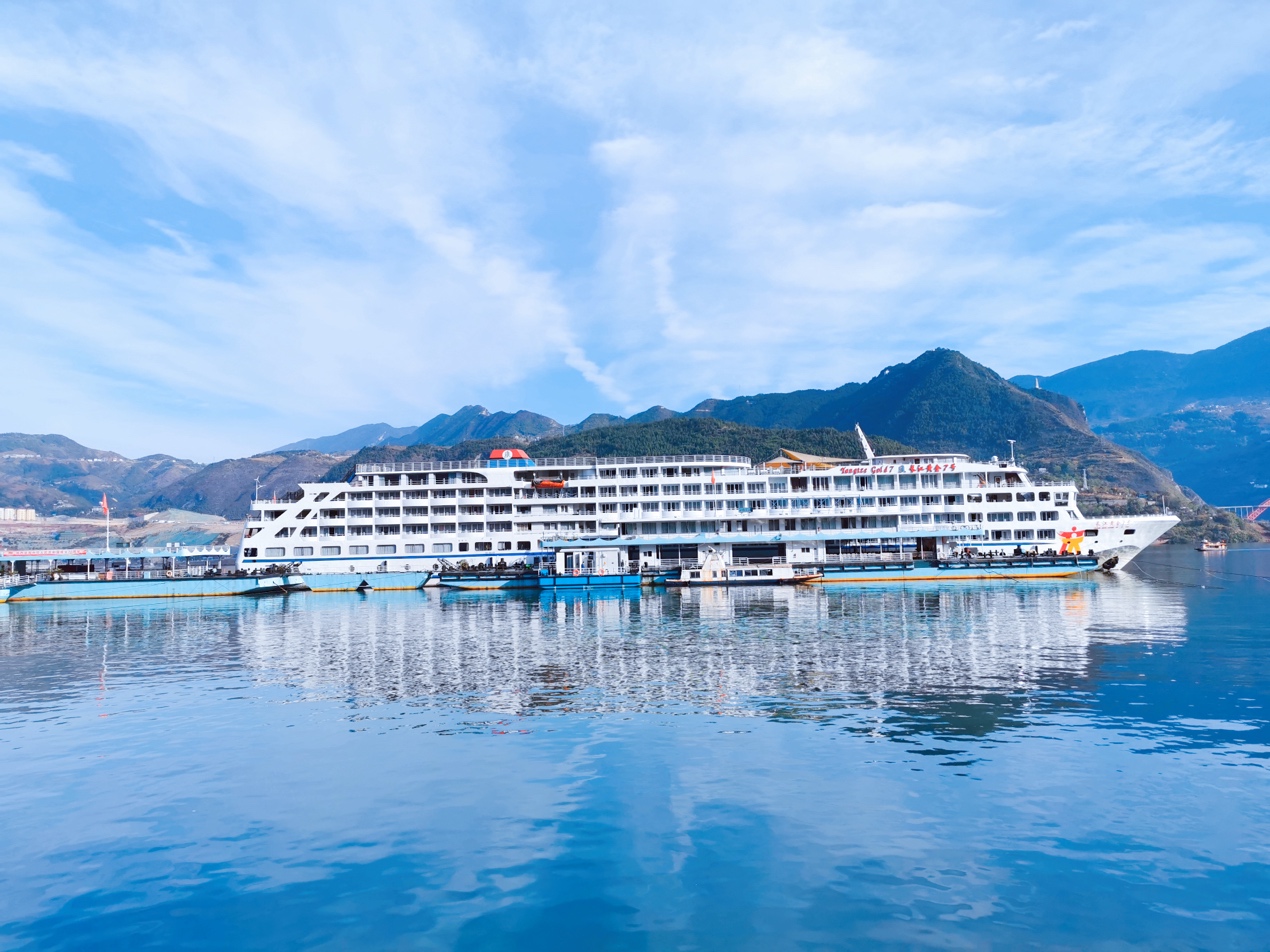 “黄金7号”游轮平稳停靠在巫山县旅游码头。尹瑶瑶 摄