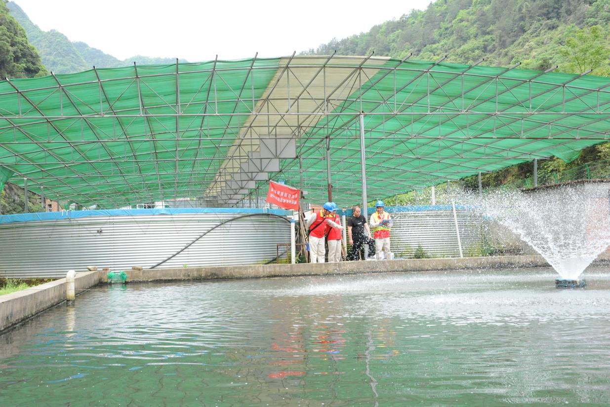 奉节县蓬运水产养殖基地负责人周蓬向国家电网红岩(奉节营销)共产党员服务队介绍育苗池技术。杨嵛杰 摄
