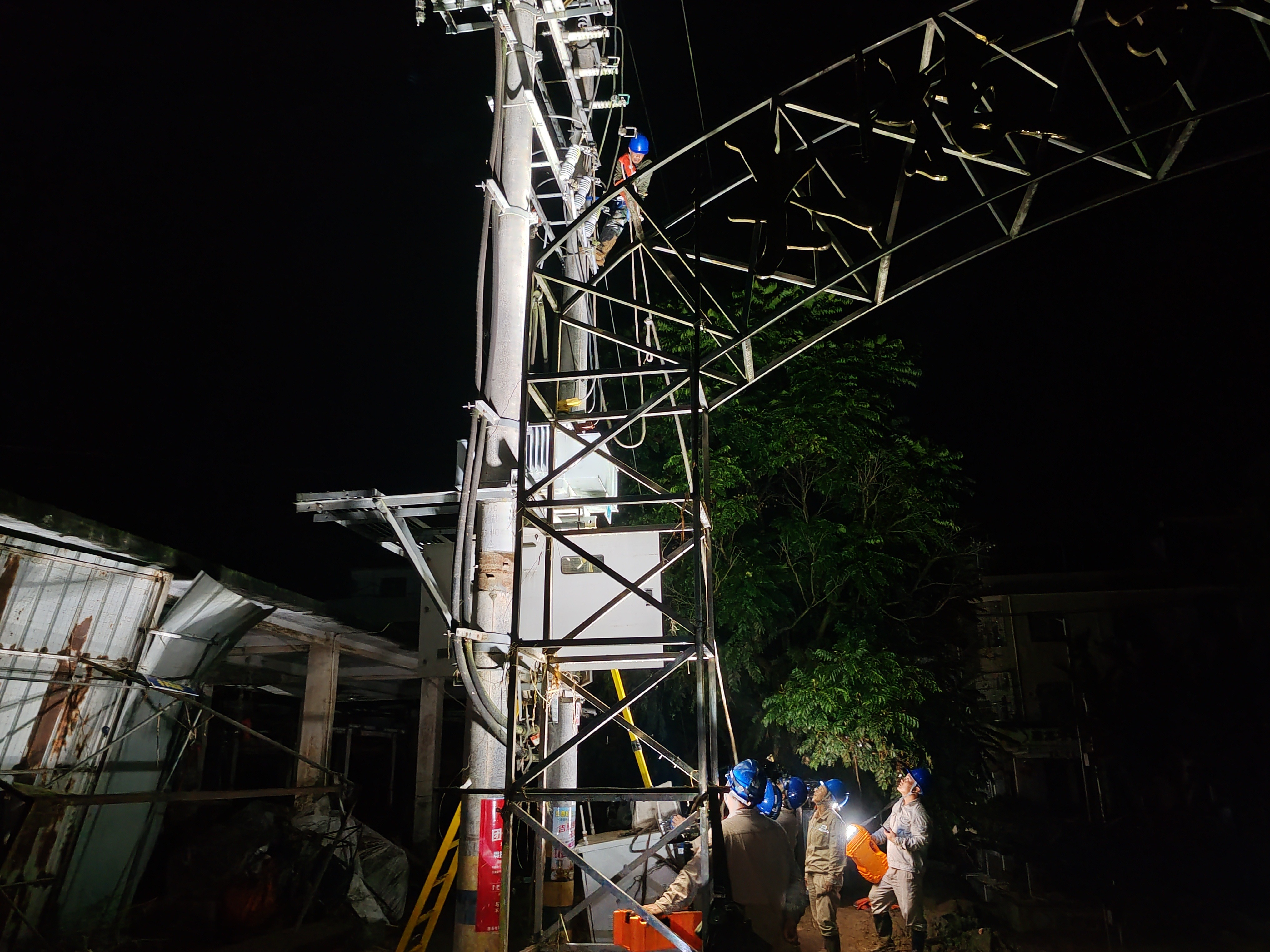 在太拔镇太拔村,10千伏太朱线太拔配变与桥头配变因被洪水淹导致JP柜、互感器等设备受损。得知有一位长年依靠吸氧机辅助吸氧的七旬老人用电受影响的情况后,上杭县供电公司太拔供电所党支部书记郭志盛带领抢修人员与时间赛跑,历经7个小时通宵达旦作业,高效完成抢修任务,受到老人家属由衷点赞。