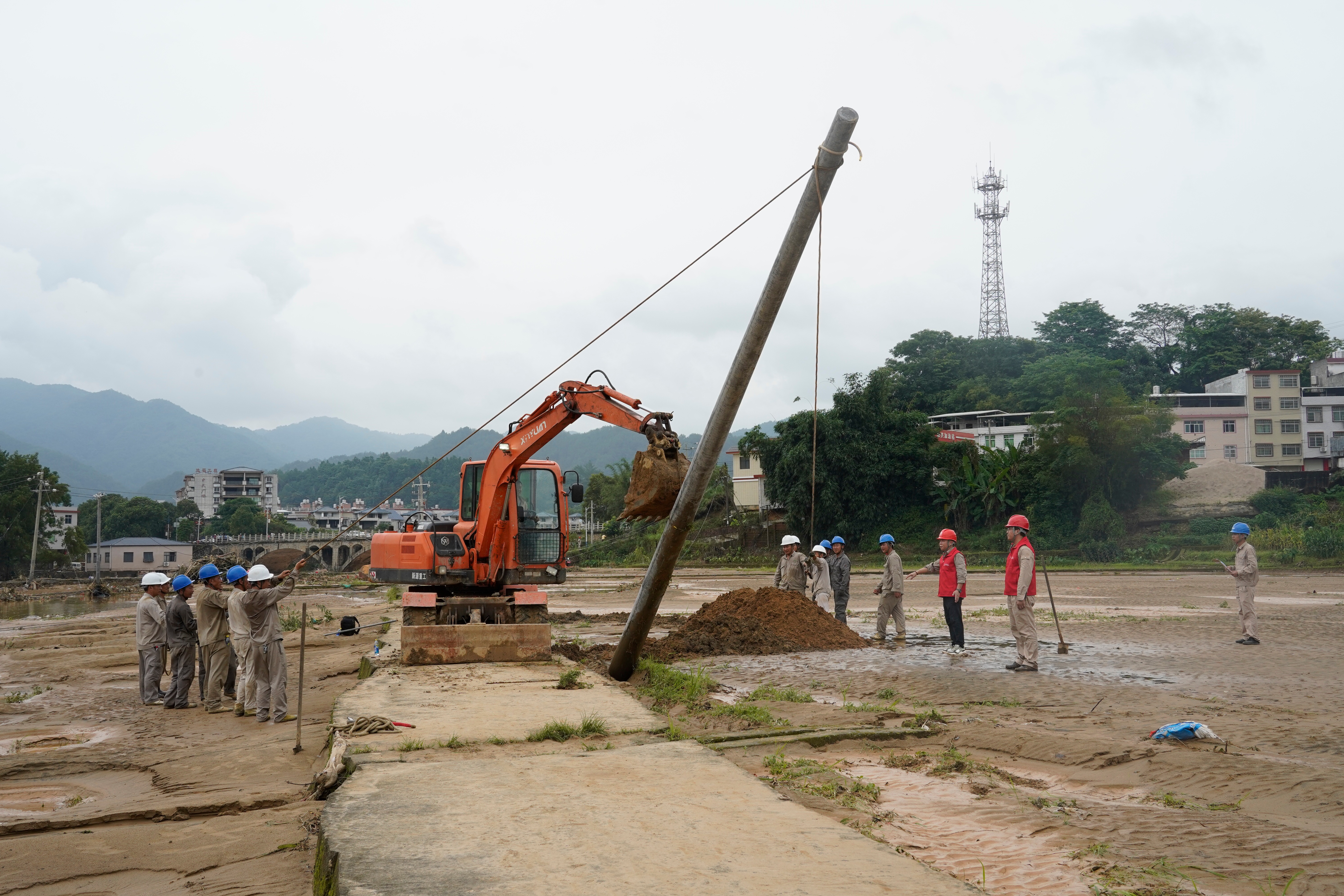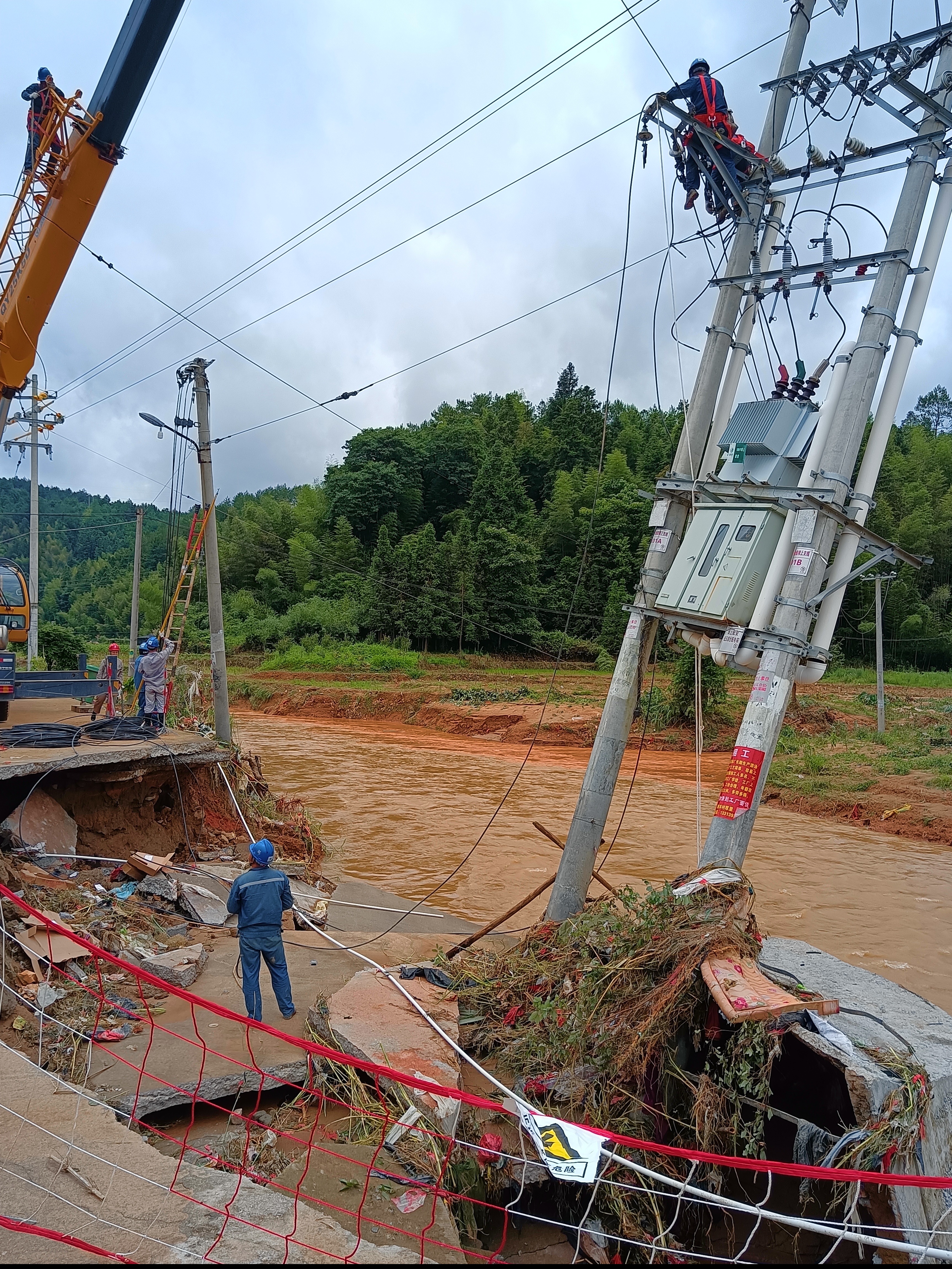 受恶劣天气影响,白砂镇10千伏白塘线沿线发生塌方,部分支线电杆出现倾斜,变压器、刀闸等设备不同程度受损。驻点中层干部关华明与白砂供电所所长、党支部书记廖伟昌作为国家电网福建电力“双满意”(上杭古田之光)共产党员服务队骨干队员,带领服务队队员们克服二次塌方、滑坡等风险,在大型施工机械到不了的路段,踩淤泥、蹚积水,徒手推电杆、抬变压器、清理塌方树木……经过队员们昼夜连续作战,及时恢复了沿线村民的正常用电。