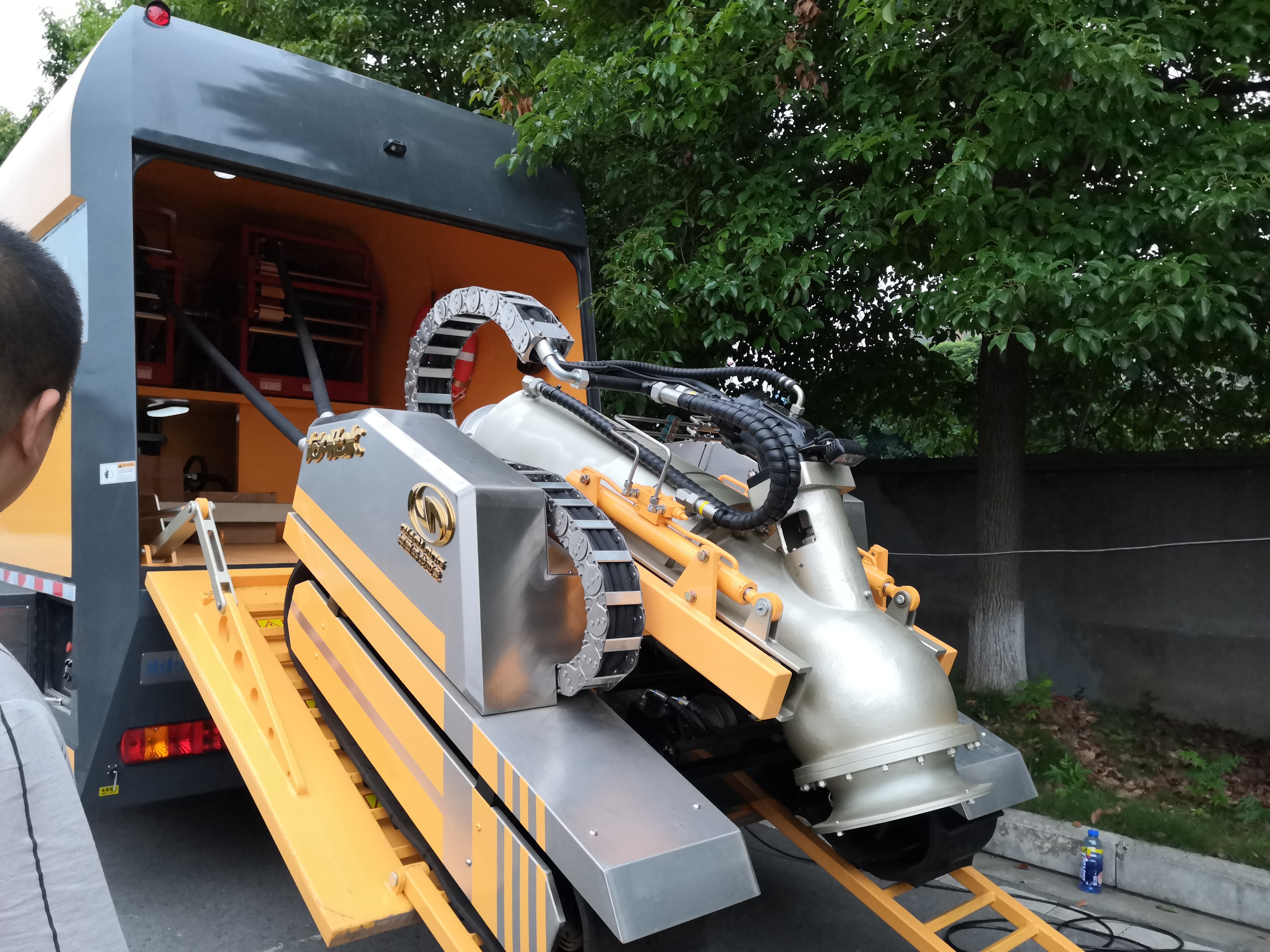 据随车前来的专家介绍,该设备名叫“龙吸水”大流量排水抢险车,又叫“龙吸水”子母车,科技含量高,主要用于大雨暴雨后的排水抢险。