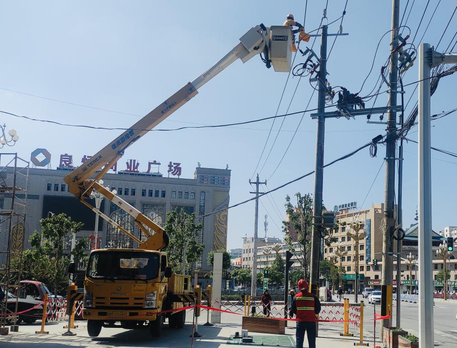 当天10时许,1台绝缘斗臂车驶入作业区域,经过现场的再次仔细勘查后,按照制定计划方案,工作人员分头行动,一方面引导车辆和行人避让,另一方面工作人员安装带电作业车的接地线,设置安全警示围栏及标识,检查工器具并穿戴好防护用具,争分夺秒进行作业。