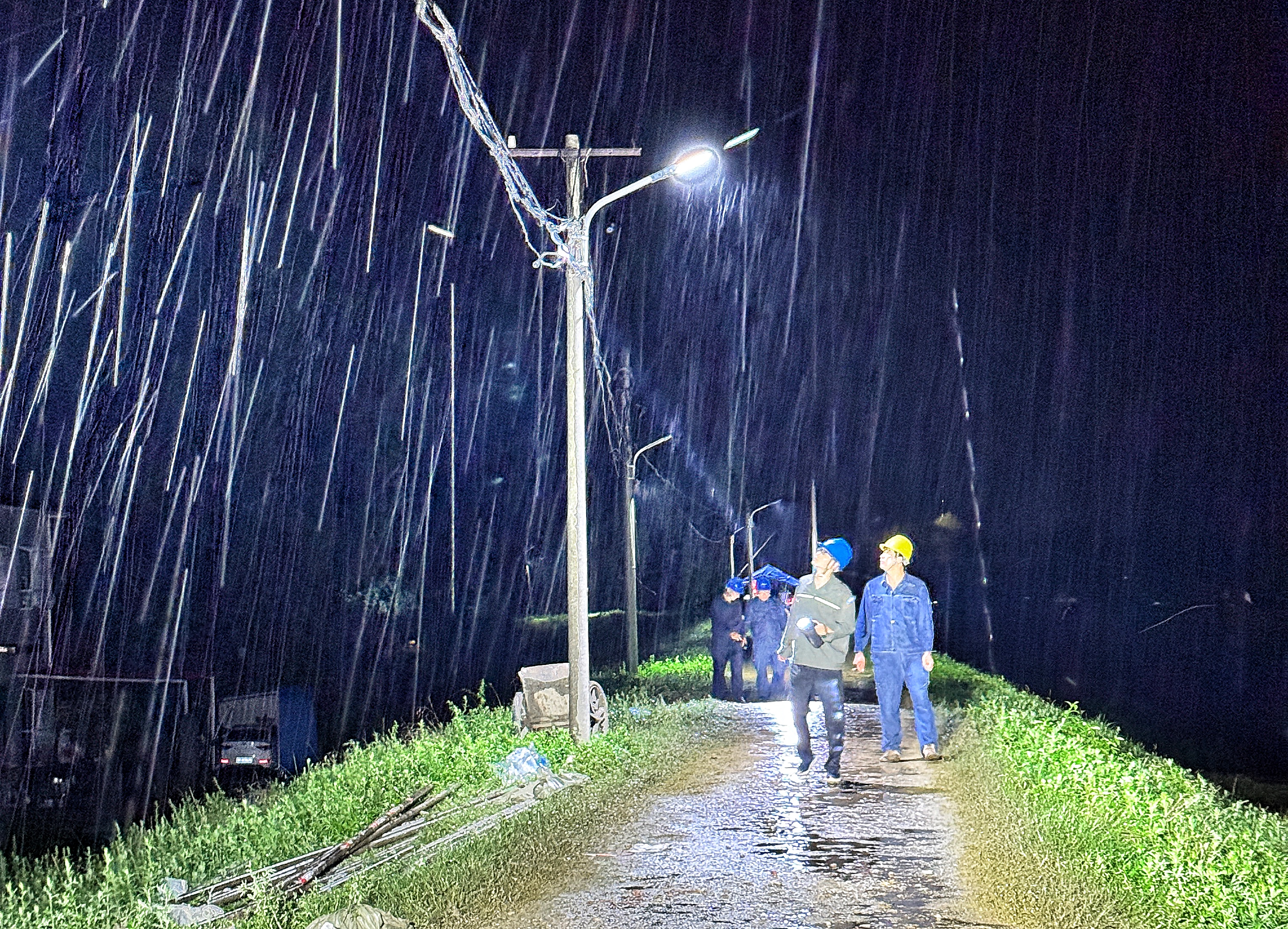 “立即联系发电车到现场支援,抢险队清点防汛物资先跟我去打头战阵。”险情就是命令,抢险刻不容缓,接到医院的求助电话后,正在带队巡视线路的国网南阳官庄供电公司官庄供电所负责人任建莹紧急调用一台500千瓦发电车,组织人员赶往现场。队员们一边靠着应急灯的亮光,在医院配电房、楼栋内细致且快速地排查故障点,一边克服地面积水严重、湿滑泥泞、路面难行的困难,将发电车开至安全区域。最终发现由于医院地下配电室积水严重,造成配电设备损毁。任建莹与队员们当场研究敲定临时供电方案:医院地下配电房设施已经损坏,必须重新制作配电盘,接入应急发电车,满足临时用电需求,待雨势减小后,调集抢修物资协助医院进行维修。7名抢修人员在过腰的积水中奋战,抽除积水、安装挡水板,制作配电盘,接入发电车。经过四个小时的连续战斗,天亮前首先恢复医院供电,并安排人员现场值守,随时应对突发情况,确保不间断供电。