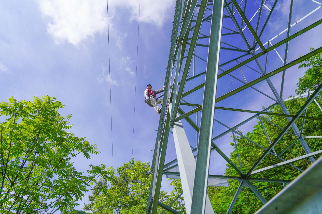 220千伏华城线连接着开州东华变电站和城口,横贯高海拔的雪宝山无人区。队伍驱车深入山林,从220千伏华城线151号铁塔开始巡至191号铁塔。服务队员们在炽热阳光下,穿越茂密丛林,攀越陡峭山坡,克服障碍,细致检查每一处细节。他们使用专用设备拍摄铁塔的全貌及细节,并通过无人机全局勘查,不放过任何隐患。