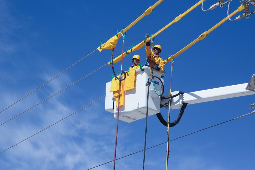 中国能源新闻网讯(许小萍 马秀鹏)“现场准备工作已就绪,申请作业。”“注意保持安全距离,可以作业。”7月19日,在青海省海西蒙古族藏族自治州格尔木市10千伏南一路带电更换柱上开关作业现场,绝缘斗臂车搭载带电作业人员到达作业点上空,在完成一系列绝缘屏蔽措施后,搭接引流线、安装刀闸、带电更换柱上开关。