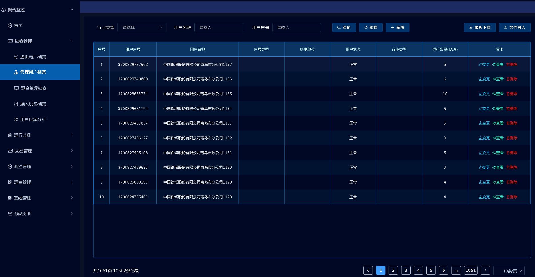 可视化、智能化的聚合运营平台系统是虚拟电厂运营的中枢。青岛供电公司营销部、数字化部组织南瑞集团等高水平系统开发单位,日夜兼程开展架构搭建、需求征集、功能开发、模块划分等系统建设任务。经过两个月的不懈努力,2024年5月份,该公司成功完成了青岛虚拟电厂聚合运营基线版本系统部署,平台具备档案管理、运行监视、交易管理、调控管理、运营管理等专业模块。