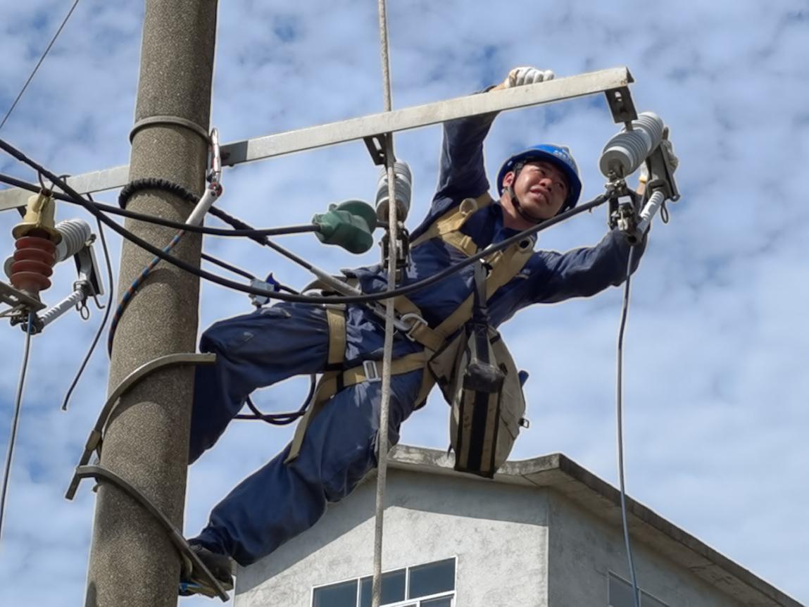 施工现场,尽管高温难耐,但工作人员很快就进入作业状态,他们麻利地登上电杆,然后开展细致作业,认真娴熟地拧紧每一颗螺丝、接好每一根线缆。在烈日的炙烤下,汗水顺着他们的脸颊疯狂地落下,不一会儿,工作服也湿透了。经过4个多小时的高温奋战,工作人员顺利将化育村一台250千伏安变压器增容为400千伏安,圆满完成配变增容任务。